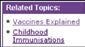 Related topics: This option provides links to topics related to the original search topic, in this case measles. Vaccinations are explained and information on childhood immunisations is provided.