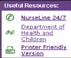 You can contact a nurse 24 hours per day on CallSave 1850 24 77 24, by e-mail (queries may be e-mailed to the address provided) or you may use Call Me Back to request a health professional from the Nurseline to call you back at a time convenient to you. Note: This service provides access to general, non-diagnostic health information! - Links to other websites: in this case Department of Health and Children at http://www.dohc.ie,